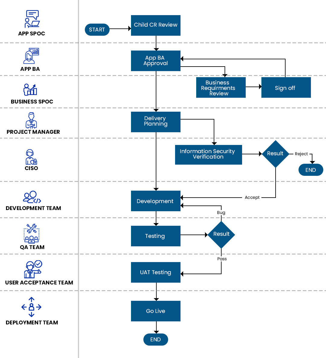 - The task then moves to all system impacted Application SPOCs for CR review.
