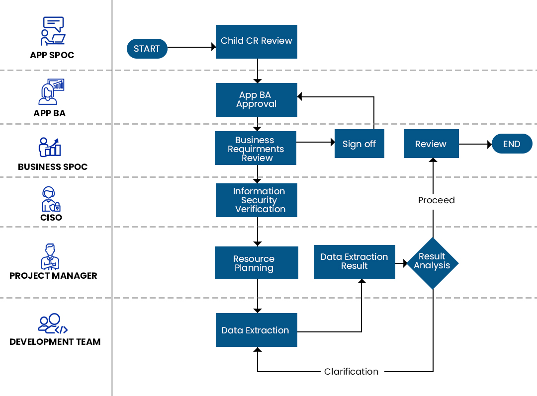 - Finally, the Business SPOC reviews the data extraction result and the workflow ends.