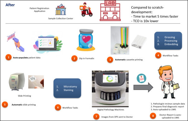 - Integrated end-to-end digital solution for automation of Histopathology process.